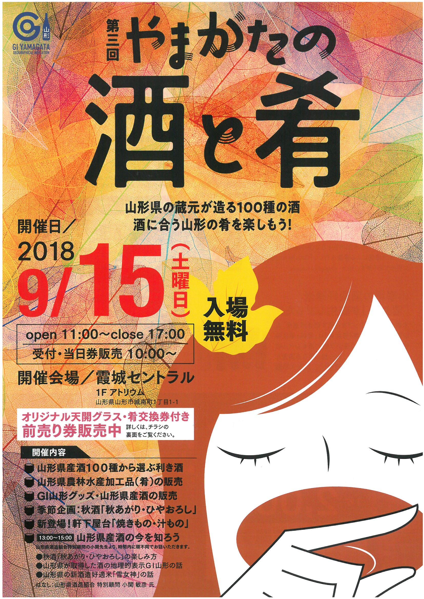 「第三回やまがたの酒と肴」のお知らせです!山形県産清酒100種の酒を楽しもう!当日は様々な企画もございますので是非ご参加ください。